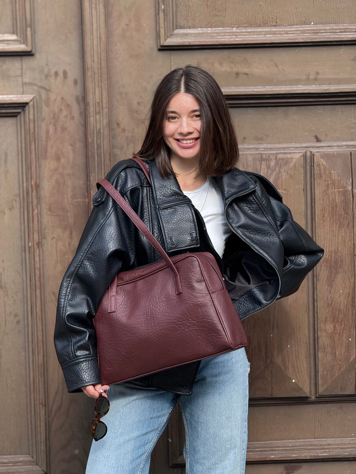 Die Daily-Tasche ist die Essenz moderner Eleganz – sie vereint zeitlosen Stil mit praktischem Komfort, den du im Alltag brauchst. Ihre klassische, tief burgunderrote Farbe und das minimalistische Design machen sie zu einem perfekten Begleiter für jedes Outfit.