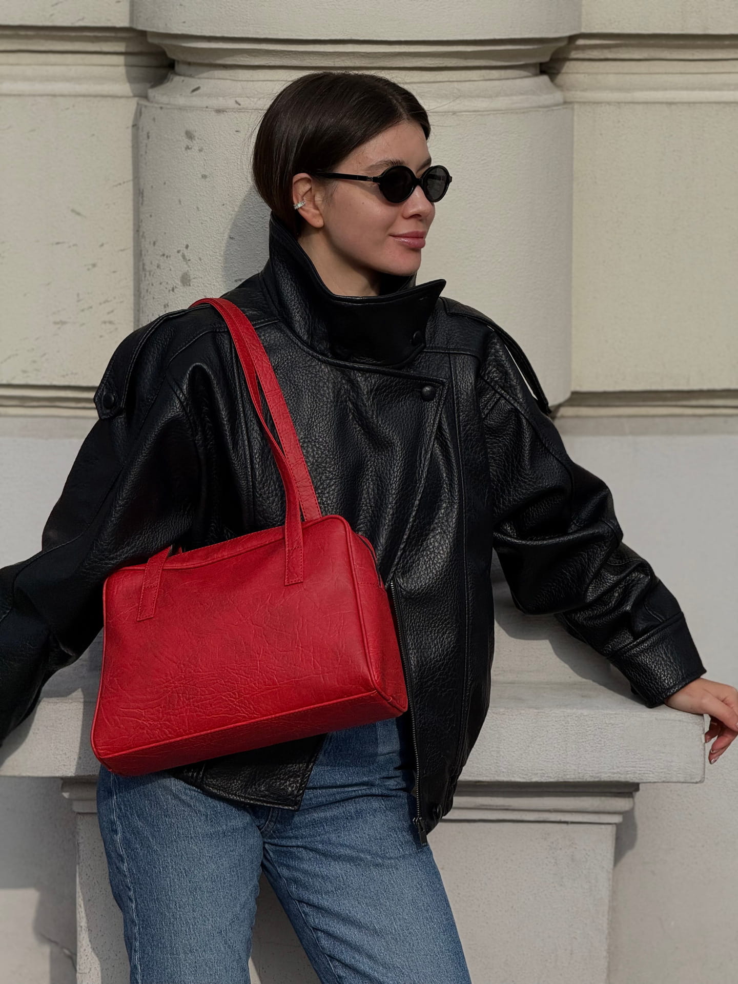 Die Tasche wird mit einem robusten Reißverschluss geschlossen, sodass deine Sachen sicher verstaut sind, und ihre kompakte Form wirkt leicht und sehr stilvoll.