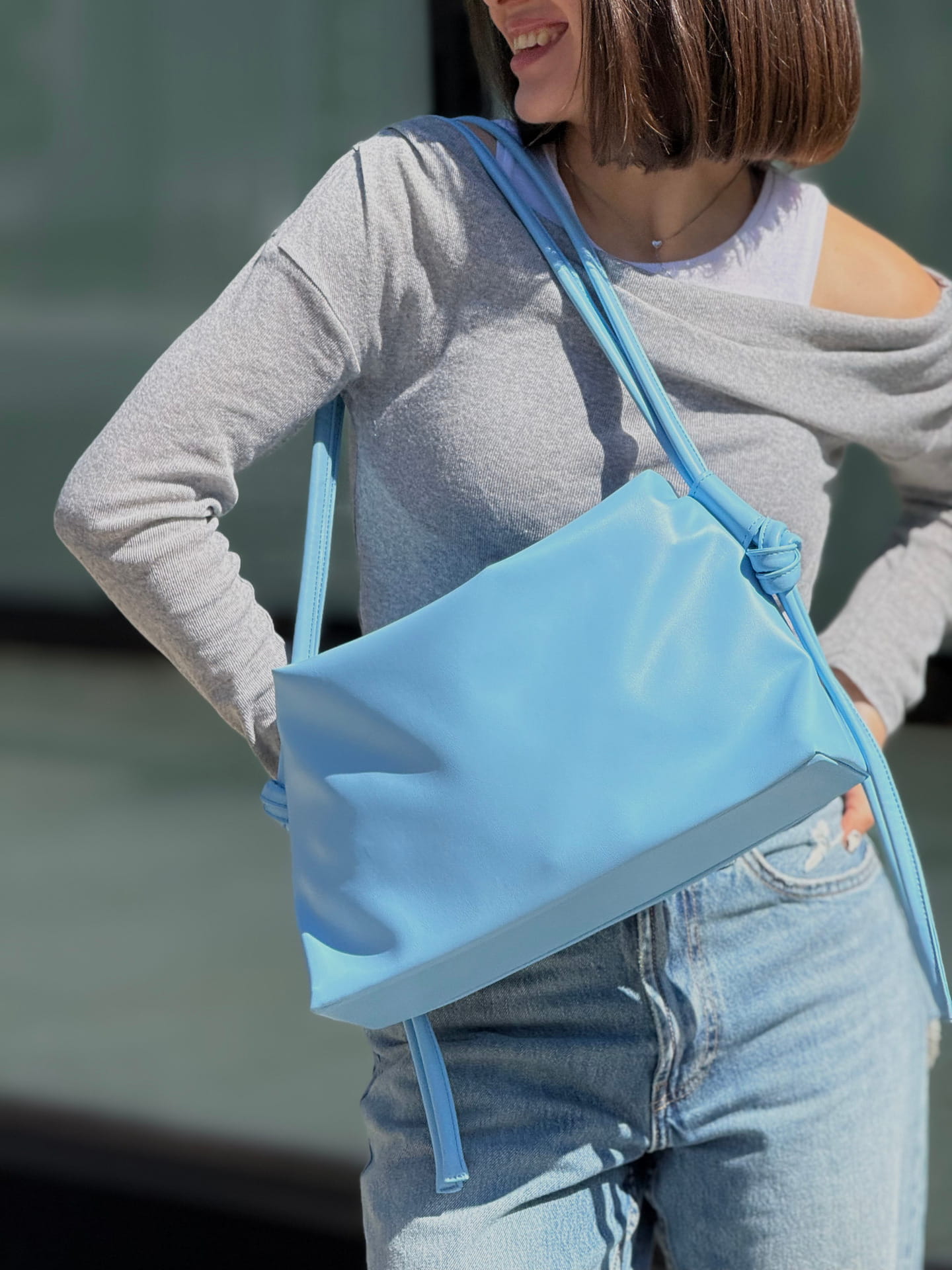 Minimalistyczna, ale z charakterem. Molly Baby Blue to nowa torebka, która idealnie łączy styl i funkcjonalność. Jej prosta forma przyciąga wzrok, a boczne wiązania dodają jej unikalnego charakteru.